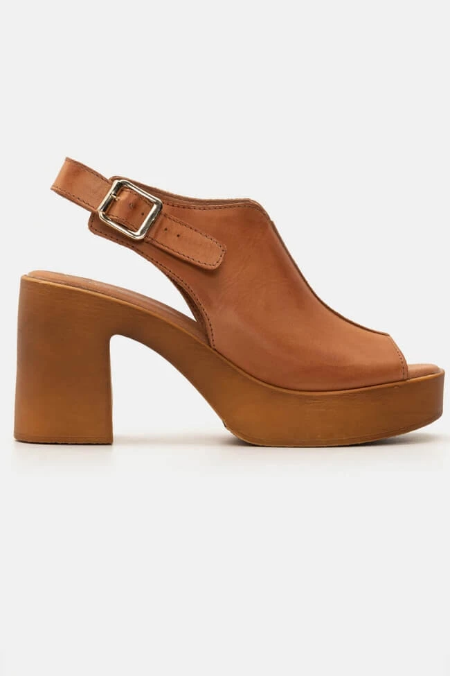 LUIGI DESIGN – Δερμάτινα Clogs Peep Toe με Τόκα