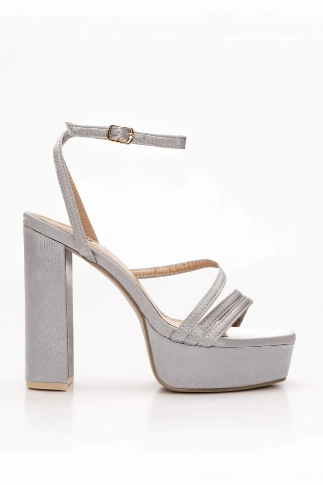 Πέδιλα με σατέν υφή και φιάπα. Δένει με λοξό λουράκι.