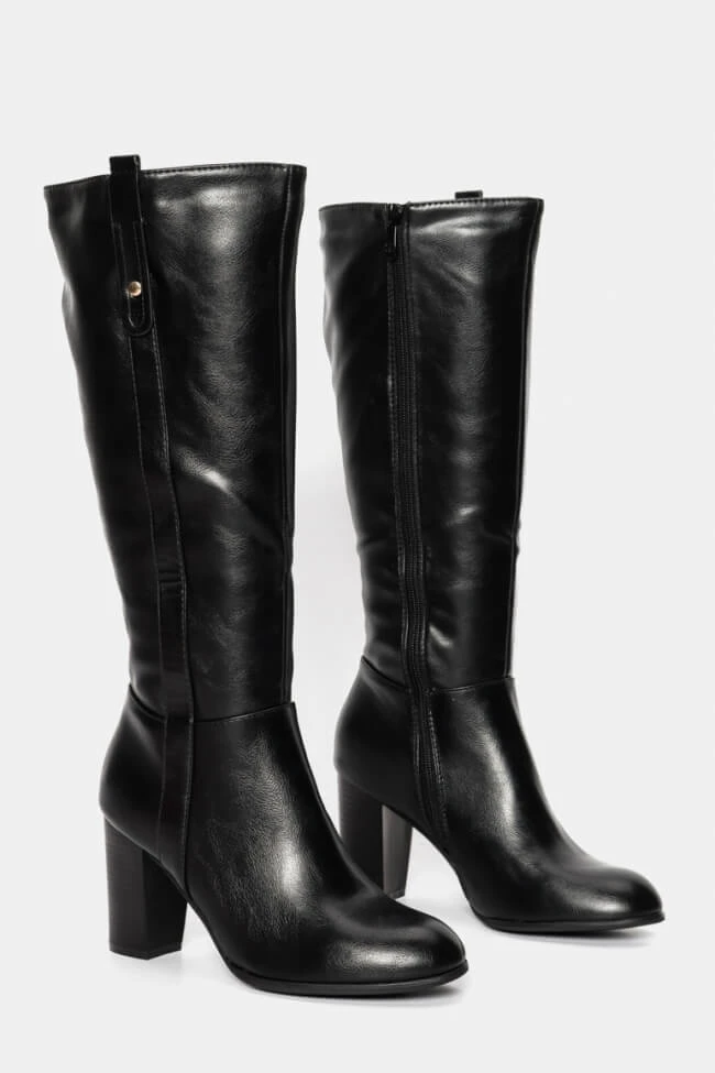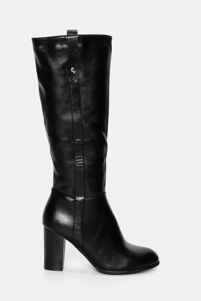 Μπότες από συνθετικό δέρμα χωρίς φιάπα με πλαϊνές ραφές και αναδιπλούμενο τελείωμα με επιπρόσθετο κομμάτι στην εξωτερική πλευρά του επάνω μέρους. Το ύψος τους ειναι κάτω από το γόνατο και διαθέτουν πλαϊνό φερμουάρ.