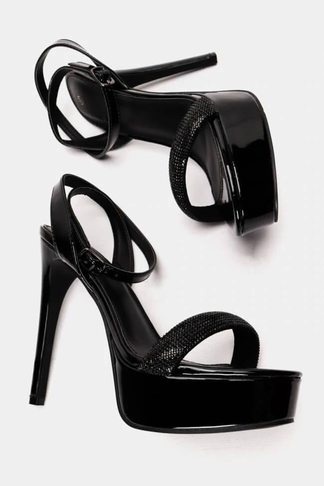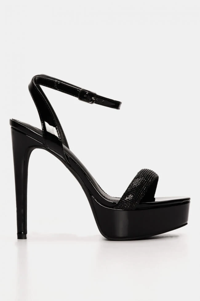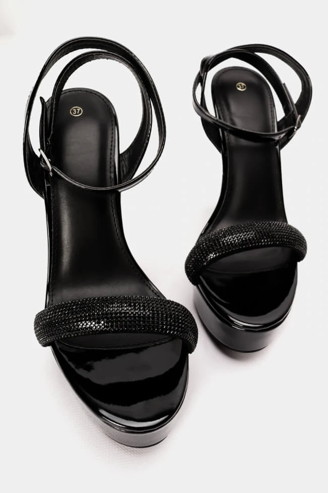 Πέδιλα με φιάπα και λεπτομέρεια από στρας. Δένει με λουράκι στον αστράγαλο.