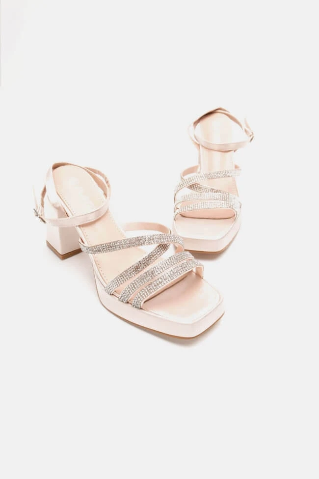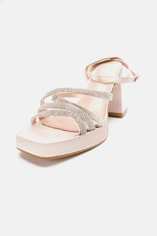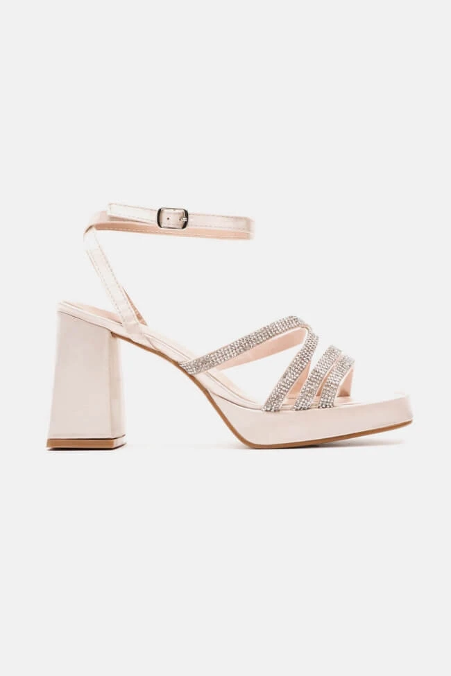 Πέδιλα Σατέν Εξώφτερνα με Λουριά απο Strass & Φιάπα